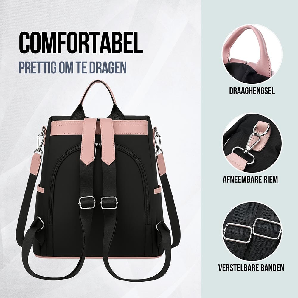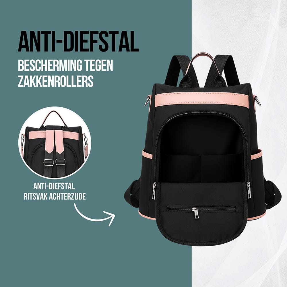 Deze 3-in-1 tas gebruik je als rugtas, schoudertas / crossbodytas of handtas. De rugzak heeft een speciaal Anti-Diefstal vak waardoor je niet meer bang hoeft te zijn dat dieven kostbare spullen zoals je portemonnee of je mobiele telefoon uit je tas stelen. Daarom is deze tas ideaal voor vakanties, als shopper of dagelijks gebruik. Voortaan ga jij met een relaxed gevoel, veilig op pad!